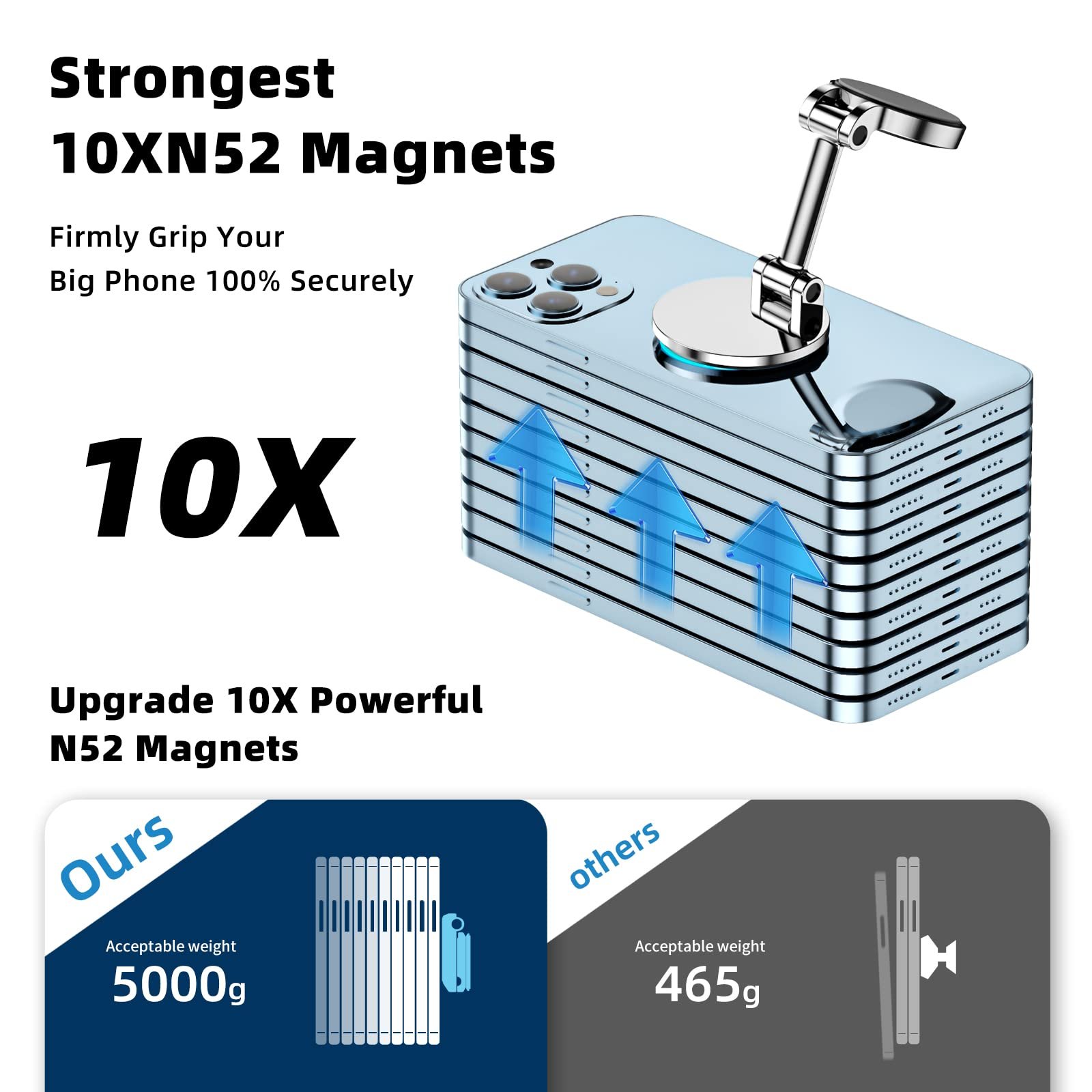 Magnet N52 bertenaga tinggi mengunci ponsel secara instan dan aman, memudahkan pemasangan satu tangan yang praktis.